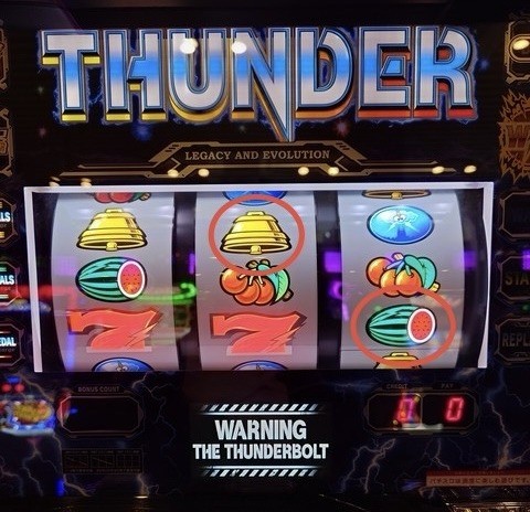投稿本文:右1番スイカは下段ビタで狙いたいところですが…写真は順押…