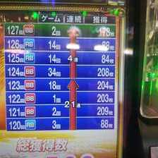 BIGは約204枚獲得、REGは約84枚獲得。