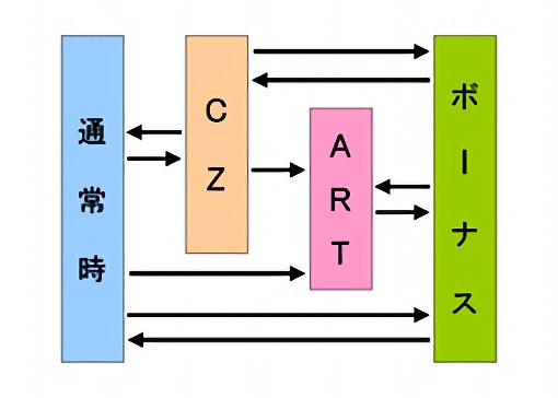 滞在中は全小役成立時にART突入抽選が行われ、ベルならチャンス、レア小役なら大チャンスとなる。