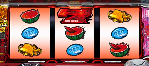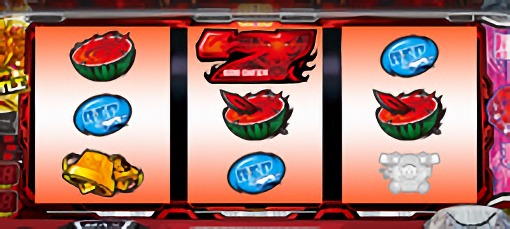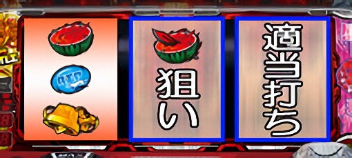 スイカが停止した場合は、中リールにスイカ図柄を狙い、右リールを適当打ち。