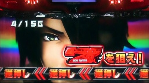 赤7図柄揃い(AT中のバトル勝利ストック)のチャンス。