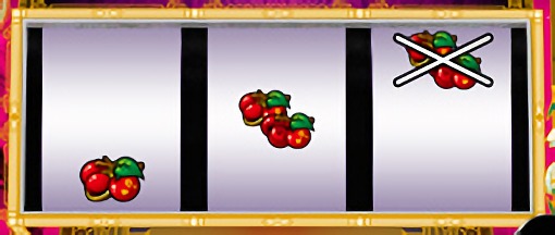 角チェリーが停止した場合は、中リールを適当打ちし、右リールにチェリー図柄を狙う。
