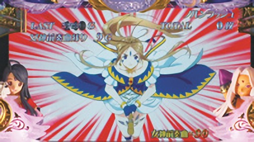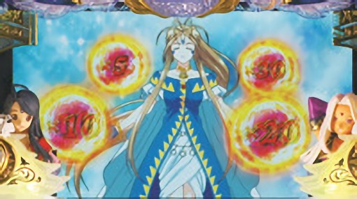 ハズレ目やリプレイ、ベル出現後にカットインが発生すればチャンス。MAXBETを押してベルダンディーの法術が成功すればレア小役に昇格。弱レア小役から強レア小役へのステップアップもあり。