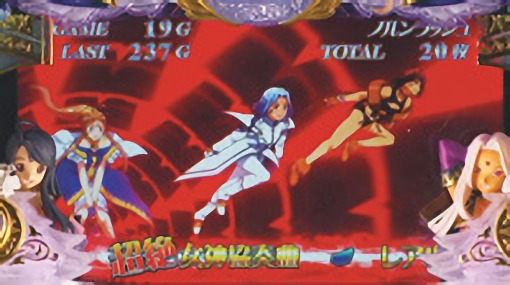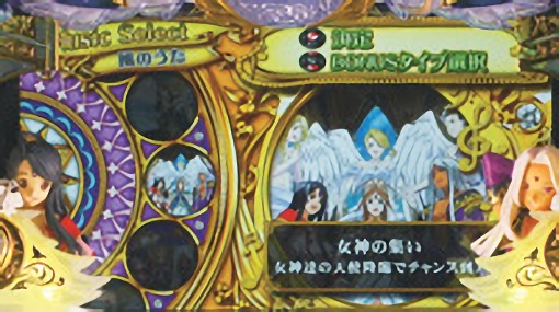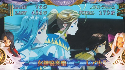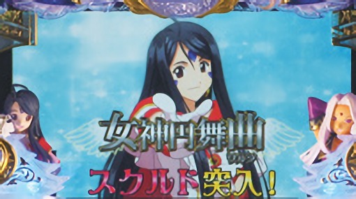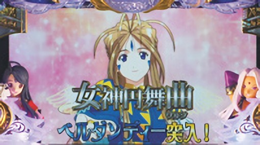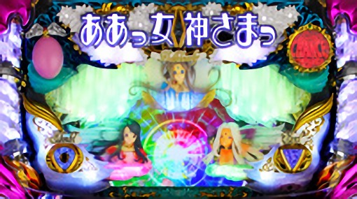 - ハズレを含む全役で毎ゲーム上乗せする「女神乱舞」や、0ゲーム連上乗せ「女神円舞曲(ワルツ) ベルダンディー」を搭載。