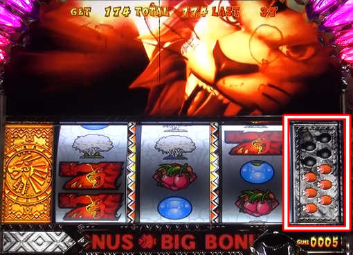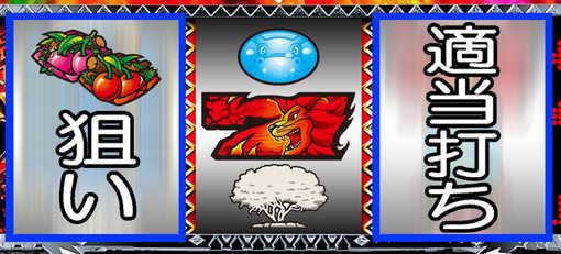 消化中のレア役成立時は、「ゲーム数3桁以上の直乗せ」「ボーナス」「獣玉」をトリプル抽選する。