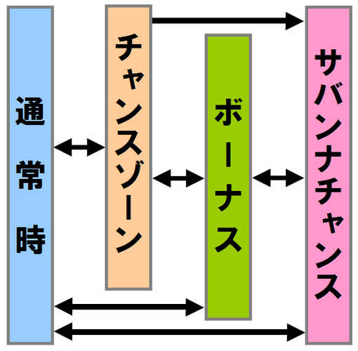 - 上乗せタイプが異なる「ダチョウアタック(真倍倍)」「ゴリラアタック(ST)」「ライオンアタック(コンボ)」「覚醒ラッシュ(上乗せリンク)」の4種類が存在。