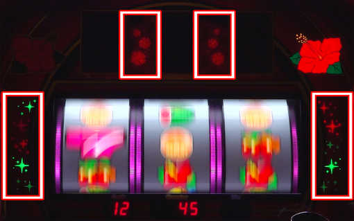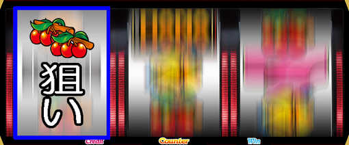 ![]() 7セグ間&リールサイドのランプが激フラッシュした場合は、通常時と同様の手順でチェリー図柄orスイカ図柄を狙う。