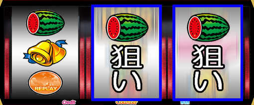 スイカが停止した場合は、中・右リールにスイカ図柄を狙う。