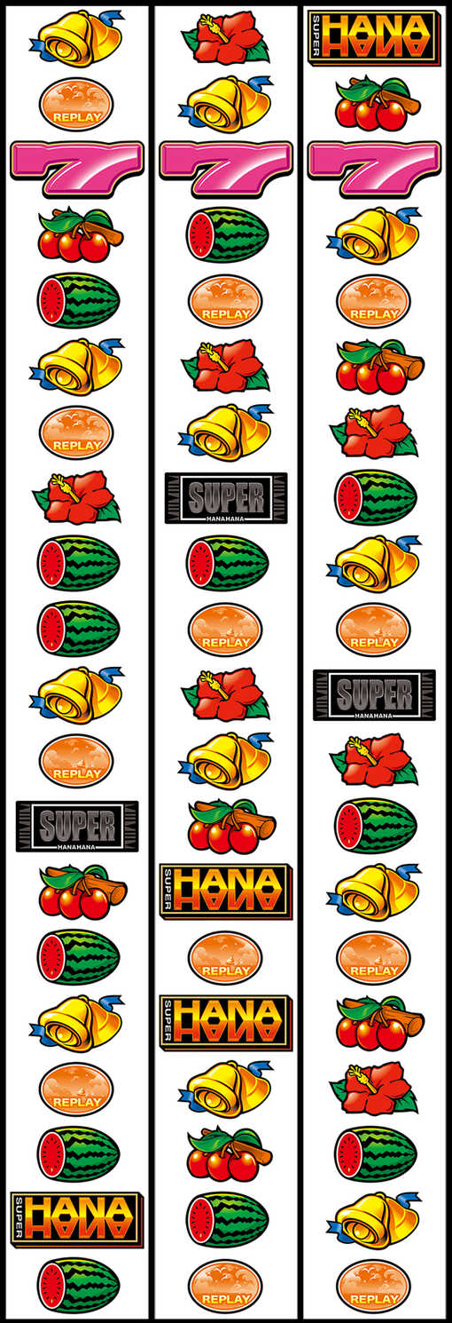 ![]() 「前兆なしの完全レバーON抽選」「目押し感覚のボーナス揃い」「小役狙い可能な配列」を採用し、Aタイプ感覚の遊技性は継承。さらに、ボーナスループが期待できるATならではの「スーパーハナハナモード」を搭載している。